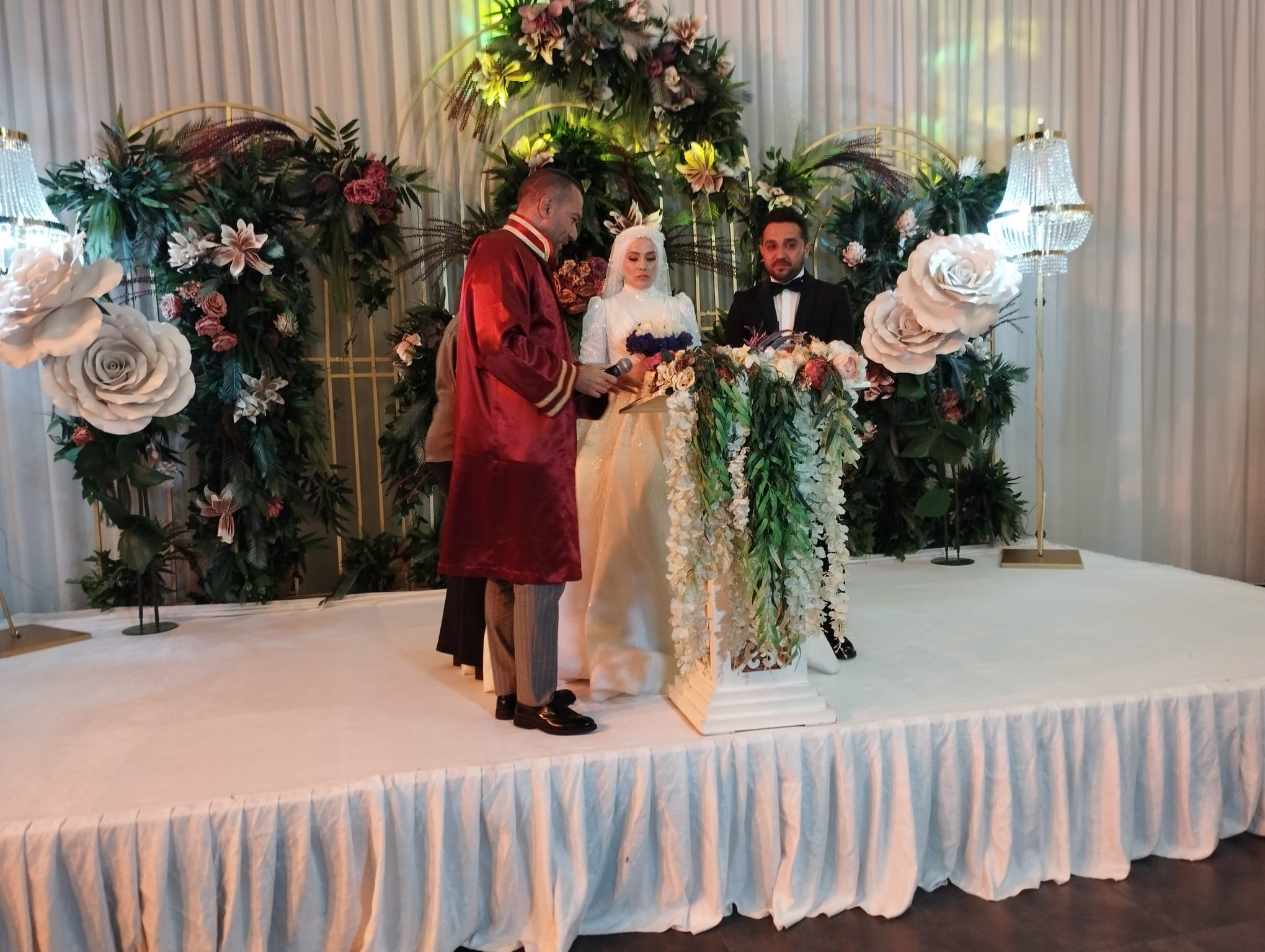 Nikahı kıyan Niğde Belediye Başkanı Emrah Özdemir, evlilik cüzdanını Hicret Aydemir’e takdim ederken,